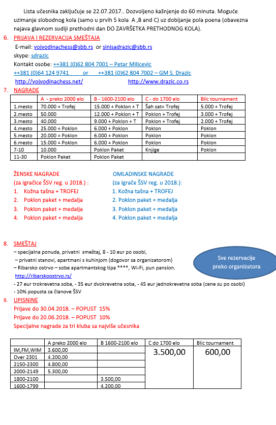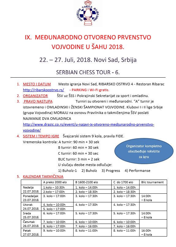 - XI medj. prv. Vojvodine u sahu – festival saha od 16 turnira / 10-20.08.2020.