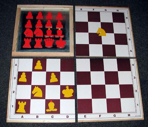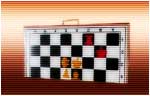 Wooden frame of two parts, Plastic chessmen with magnets, The case with a handle is available.